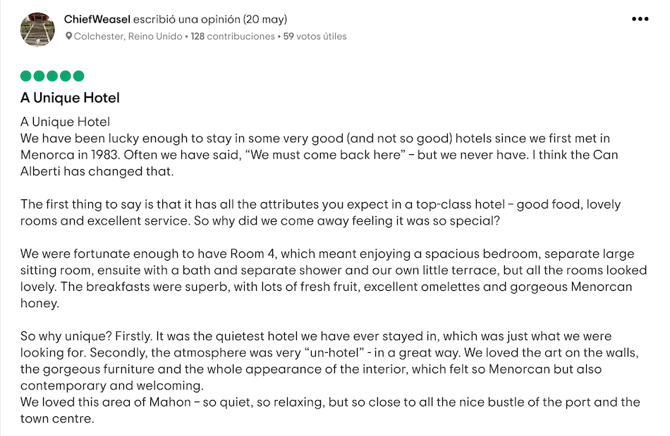 The boutique hotel has recently been completely refurbished and now houses 14 rooms that combine a refined and elegant Menorcan style with the most modern comforts. Numerous artistic and cultural activities are held here on a regular basis.